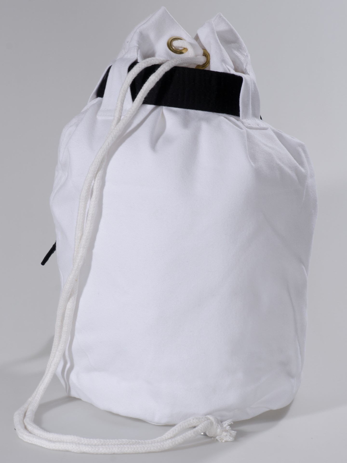 Die DANRHO Tragetasche aus 14 oz schwerem, extrem reißfestem Canvas-Baumwollmaterial und schwarzem Ziergurt wird mittels Kordelband verschlossen.